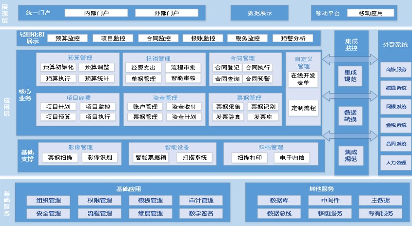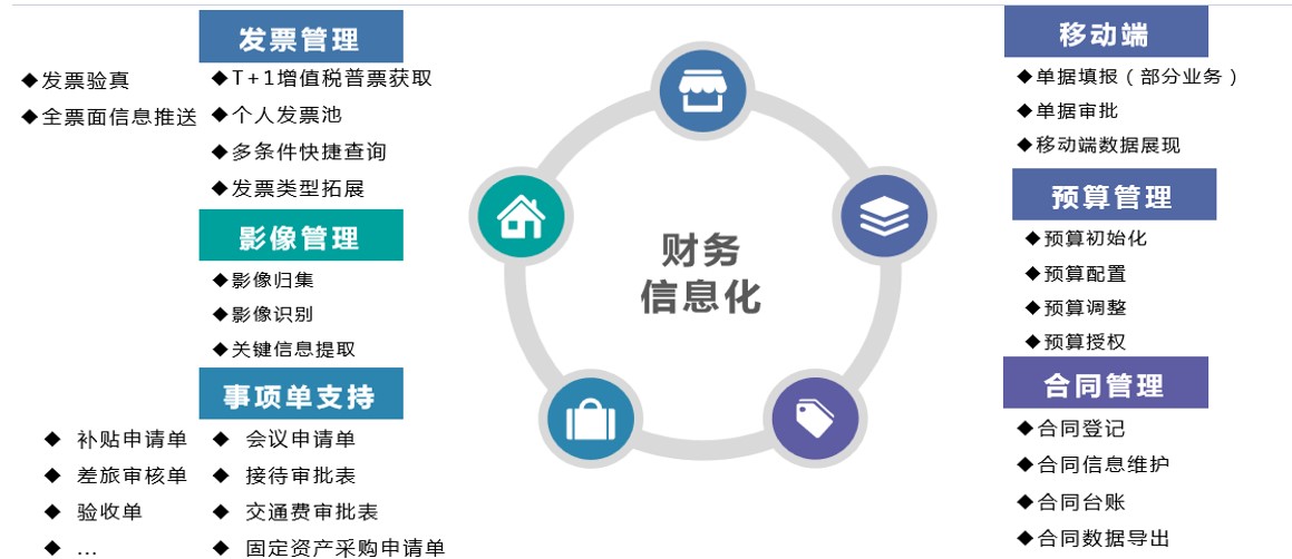 移动端应用:移动端“掌上财金”系统可实现报销单的填报、单据审批、报表展示、数据实时查看和发票移动端采集、识别、影像信息储存等多种功能。